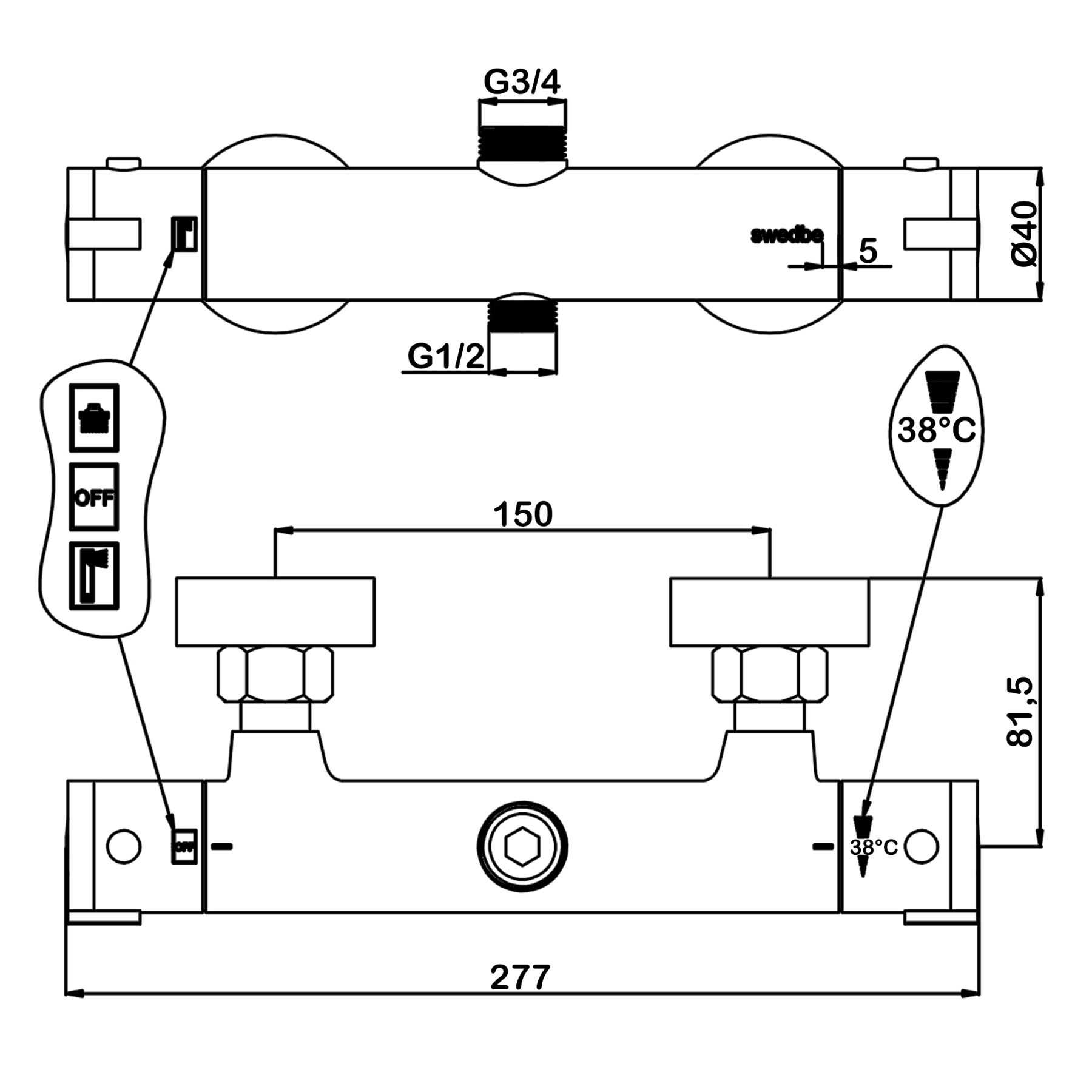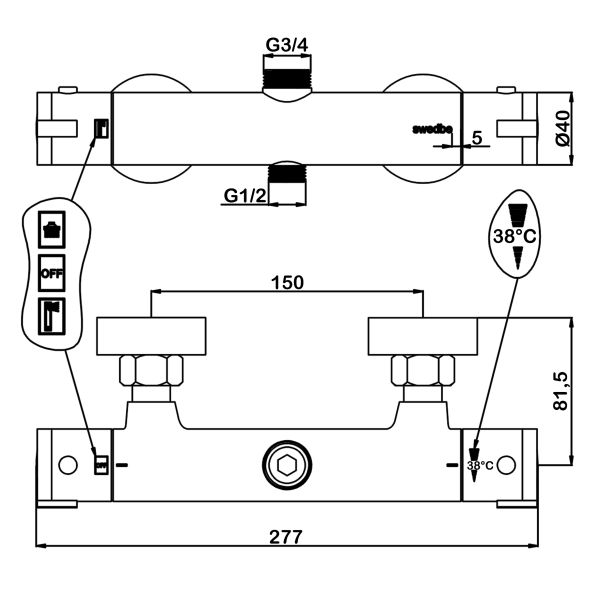Семейный душ с термостатическим смесителем для душа Swedbe Hermes 9091G1 ПРЕИМУЩЕСТВА: - те... Подробнее