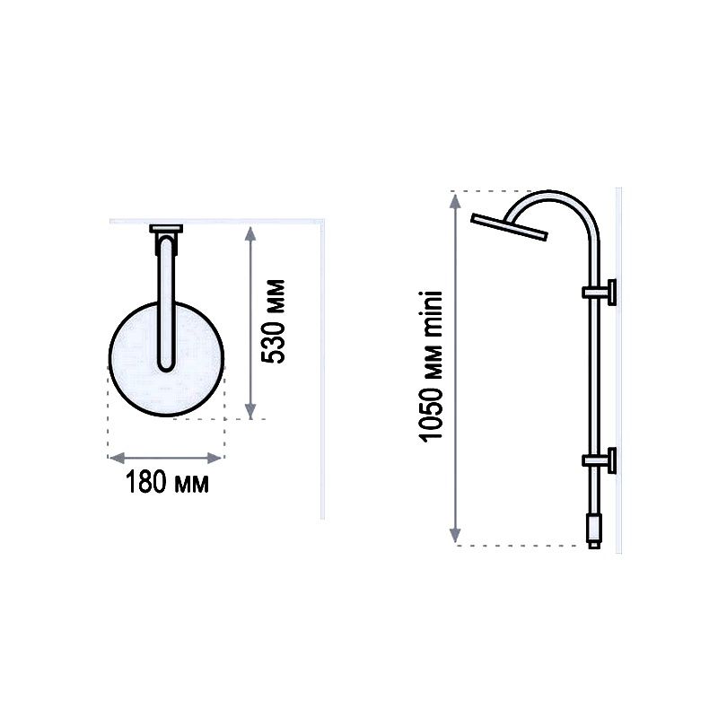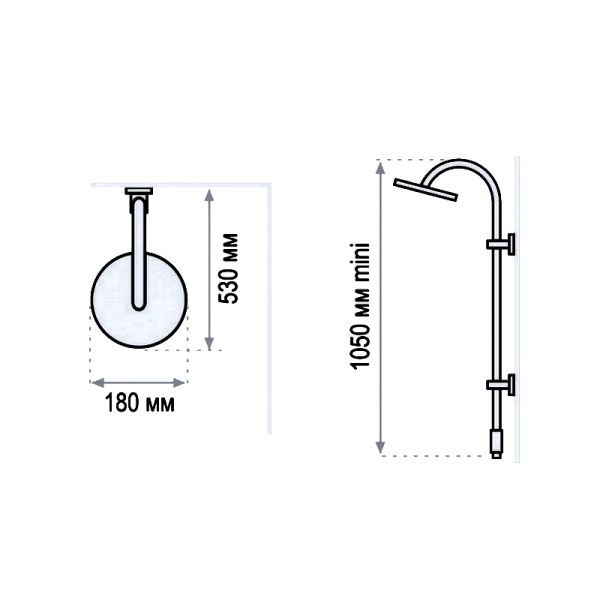 Верхний тропический душ D 180х180 mm. (ABS) -Ручной душ -Гибкий шланг 1.75 м. -Гибкий шланг подводка к смесителю 0.75 м Штанга: -Душевая штанга (нержавеющая сталь) -Пристенный вариант установки.
