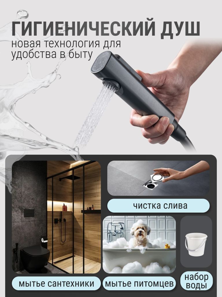 Душевой гарнитур с тропическим и гигиеническим душем Vexorus имеет возможность установки на любую поверхность. Благодаря этому вы сможете использовать ее как в ванных комнатах, так и на даче. Матовый черный цвет придает изделию особую элегантность и шарм.