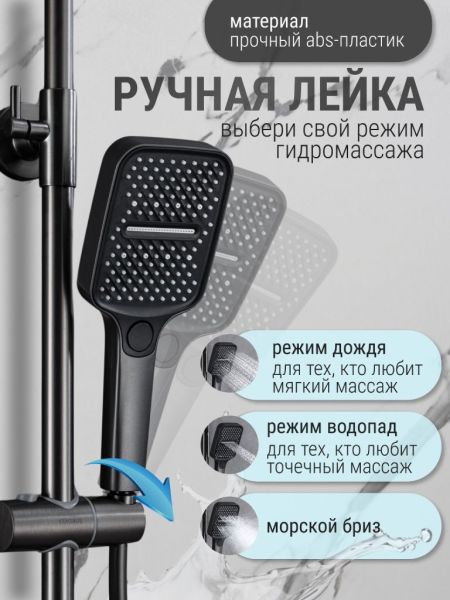 Душевая система с тропическим душем Vexorus - это система, которая превратит вашу ванную комнату в настоящий уголок роскоши и комфорта. Изделие выполнено в графитовом цвете, что позволяет гармонично его использовать в современном интерьере.