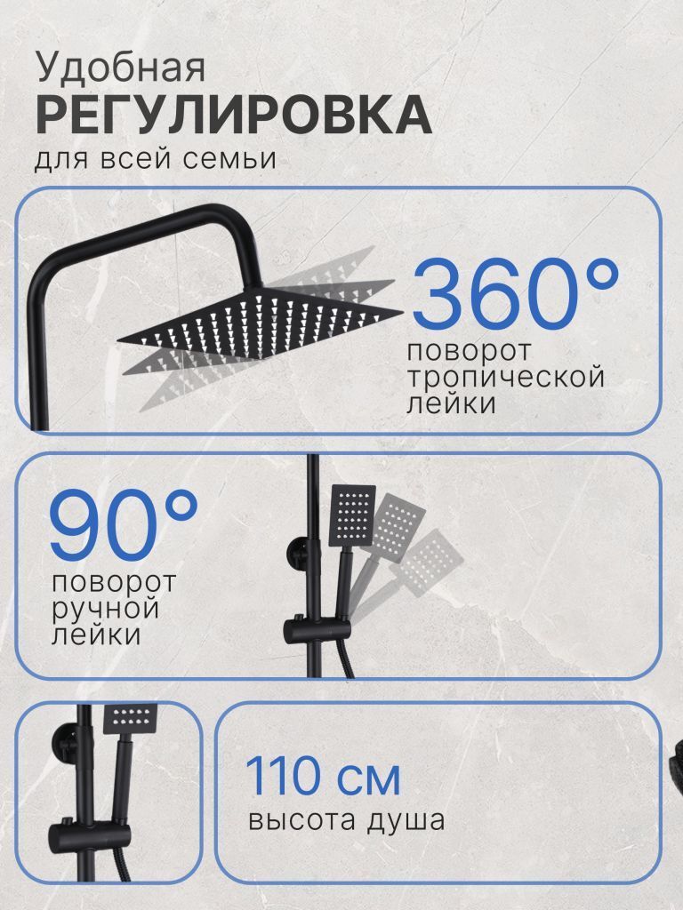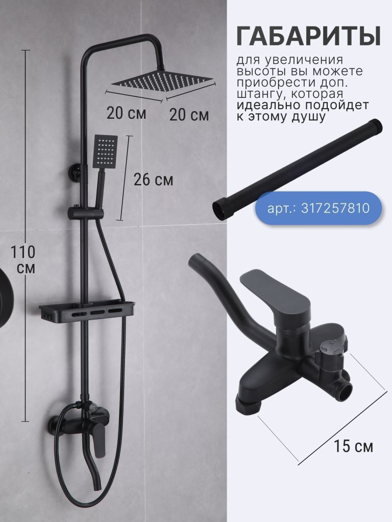 Душевые системы с тропическим душем и смесителем цвет черный матовый Vexorus изготовлены из высококачественных материалов, что гарантирует ее долговечность и надежность. Элегантный и современный дизайн дополнит любой интерьер, добавив в него изысканности и стиля. Регулируемая высота штанги позволит установить душ на требуемую высоту.