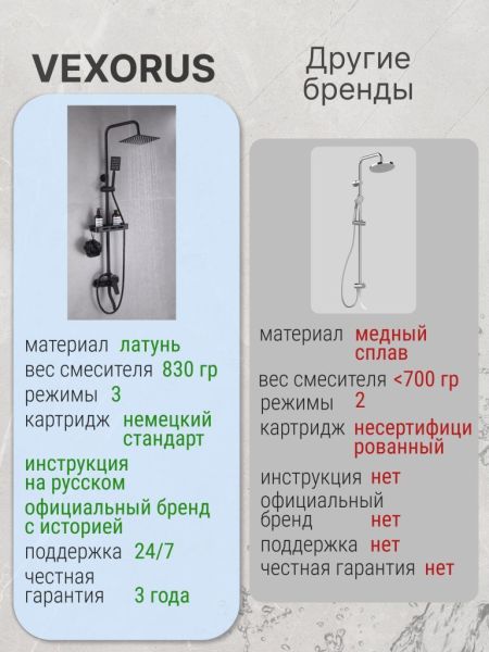 Душевая система с краном бренда Vexorus - это идеальный выбор для тех, кто ценит качество, стиль и комфорт. Представленное оборудование является надежным и долговечным, что позволяет использовать его на протяжении многих лет.