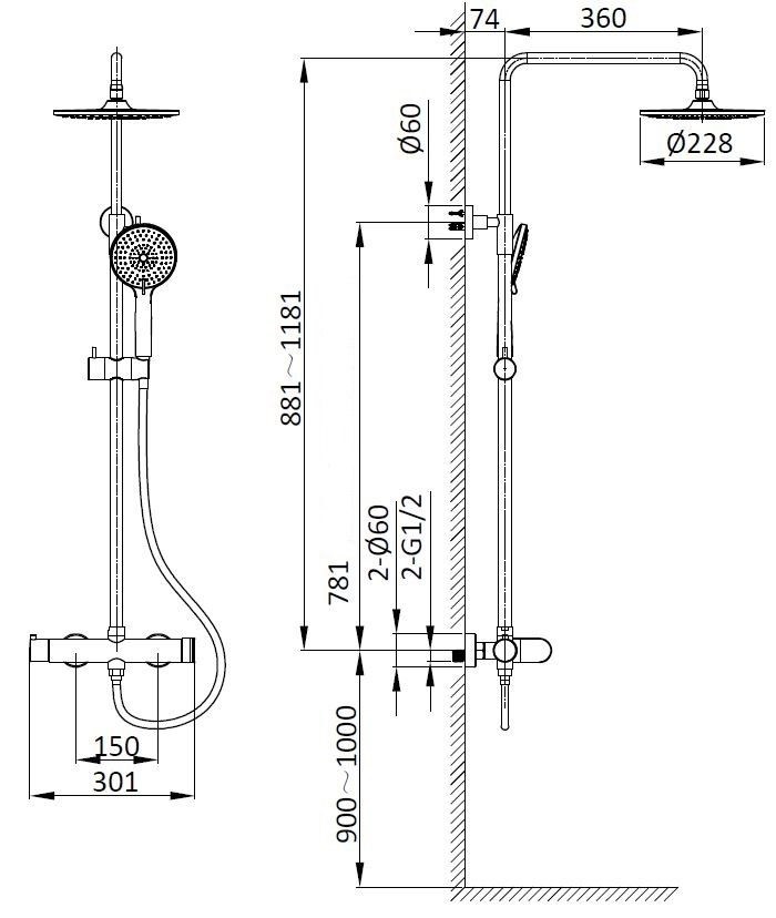 Душевая стойка Vincea Rondo VSFS-1R0GM, вороненая сталь