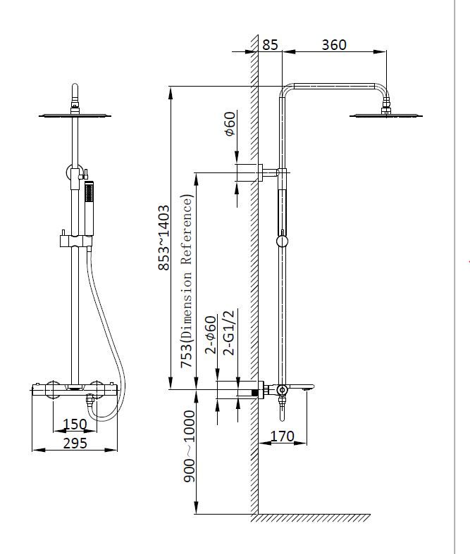 Душевая стойка Vincea Vogue VSFS-1V1TMB термостатическая, черный