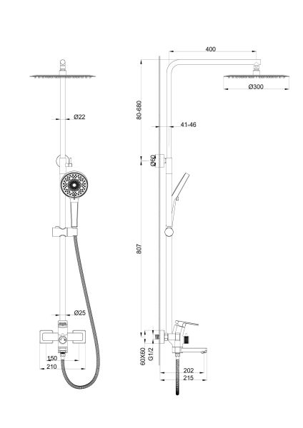 • Размер верхнего душа, см: