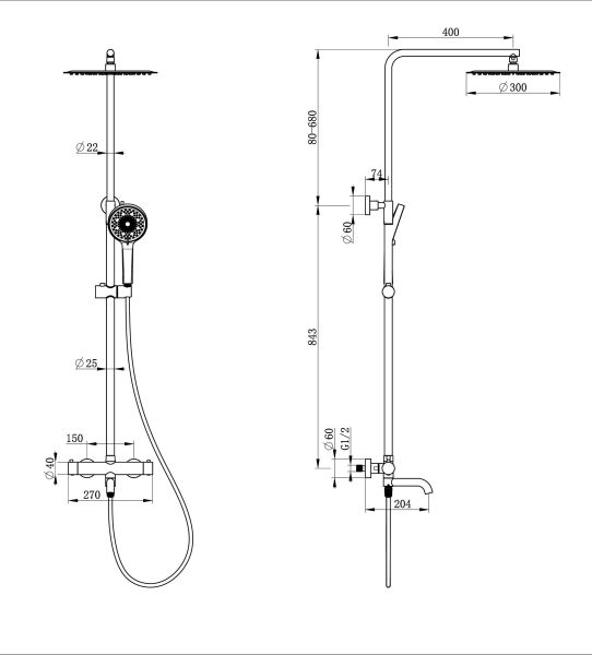 Размер верхнего душа, см:30