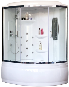 Душевая кабина RB 150ALP-T-CH станет яркой деталью вашего интерьера. Прозрачные двери из стекла придадут интерьеру ванной комнаты воздушность, легкость и простор. Занимаясь расстановкой мебели и оборудования в ванной, обратите внимание, что кабина левосторонняя. Это закрытая душевая кабина, так как верхняя часть изделия, которую обычно называют крышей, в комплекте. Дверцы у нее раздвижные, что понравится многим. Душевая кабина оснащена всем необходимым. Гидромассаж состоит из 10 форсунок, который поможет снять напряжение после трудового дня. Так же кабина оснащена встроенным сиденьем, зеркалом и полочкой что придаст комфортное принятие водных процедур. Профили в цвете хром подчеркнут безупречный стиль. Комплектация: