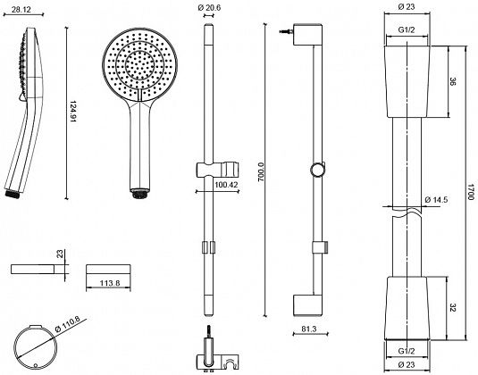 • Размер ручного душа, см: