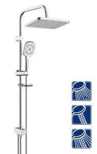 Приобрели душевой гарнитур , качество на высоте . Сама стойка из нержавеющей стали , лейка пластик но хорошего качества не болтается и не протекает .