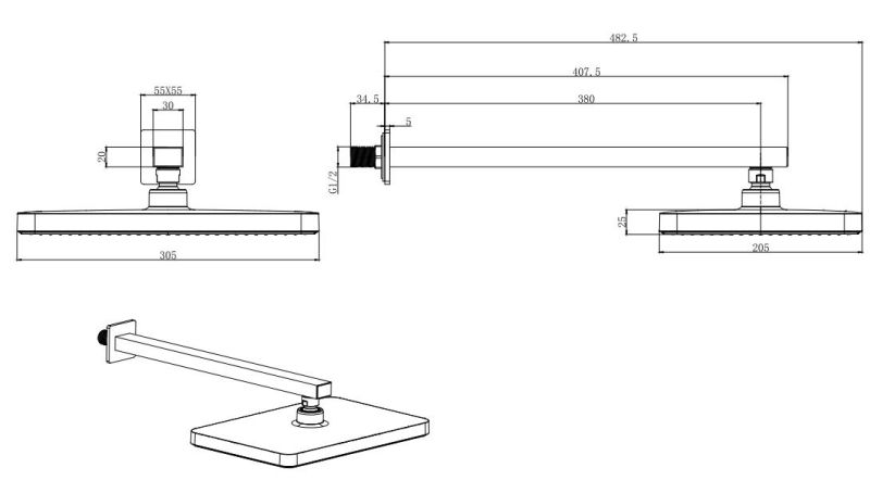 В комплекте: верхний душ; держатель для душа; декоративный отражатель; монтажный комплектОсновной материал: латуньМатериал верхнего душа: ABS-пластикМатериал держателя для душа / лейки: латуньАксессуары в комплекте: настенный переходник/отражательКоличество монтажных отверстий: 1 отверстиеНазначение: для душаРазмер верхнего душа (см): 30,5*20,5Длина держателя для душа (см): 38Стандарт подводки: 1/2"Особенности: шарнирное соединение: регулируемый угол наклона верхнего душа; легкая очистка силиконовых форсунок от известкового налета
