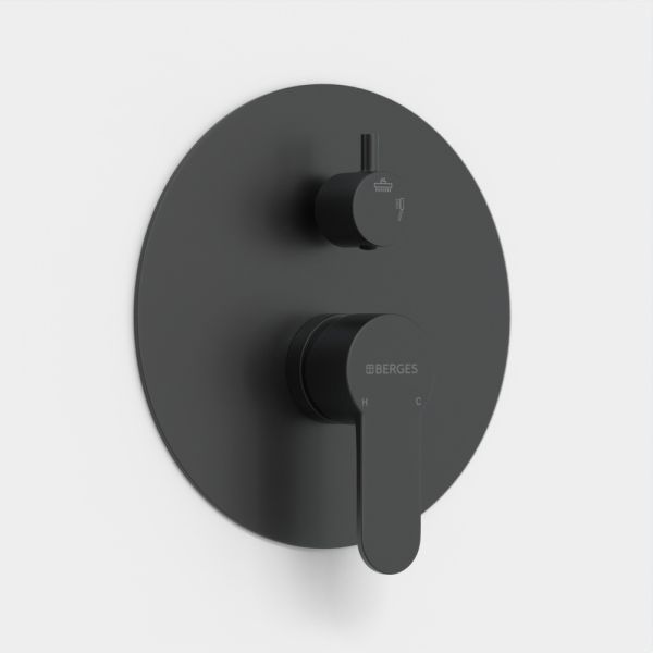 Душевой комплект BERGES NARDIS 2R BLACK - встраиваемый душевой комплект обладает двухрежимной системой и состоит из верхней лейки - «тропического ливня», ручного душа и смесителя. Лейка верхнего душа имеет инновационную систему самоочистки в виде гибких силиконовых вставок на форсунках душа, которые защищают изделие от известковых отложений. Комплект имеет матовое черное покрытие, которое выглядит безупречно на протяжении всего периода эксплуатации. Шланг выполнен из нержавеющей стали (внутри epdm), смеситель с латунным корпусом имеет керамический картридж с пропускной способностью 28 л/мин, все держатели и кронштейны сделаны из латуни и нержавеющей стали.Скрытый монтаж комплекта позволяет создавать красивое и эргономичное внутреннее пространство всего помещения.