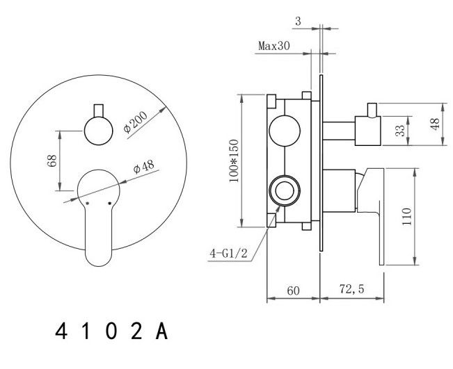 • Размер верхнего душа, см: