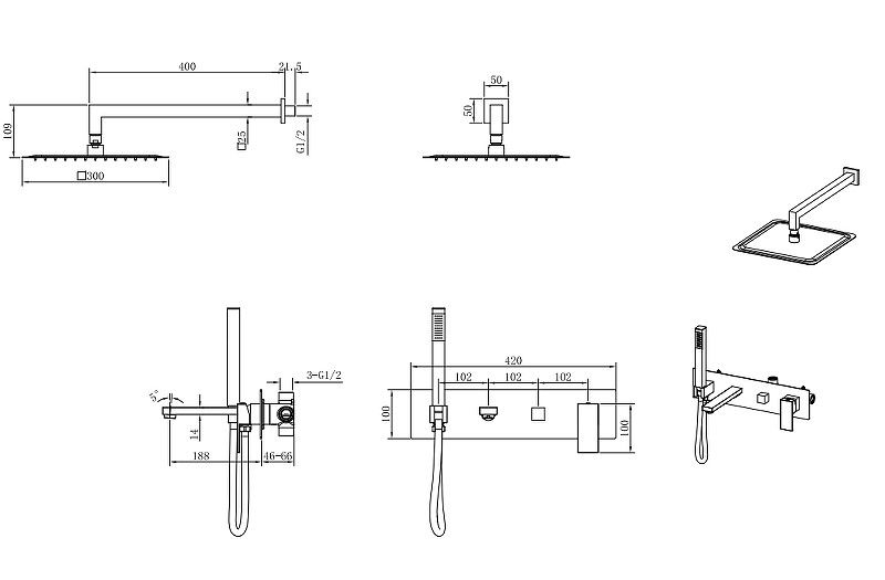 Форма верхнего душа: квадратная.