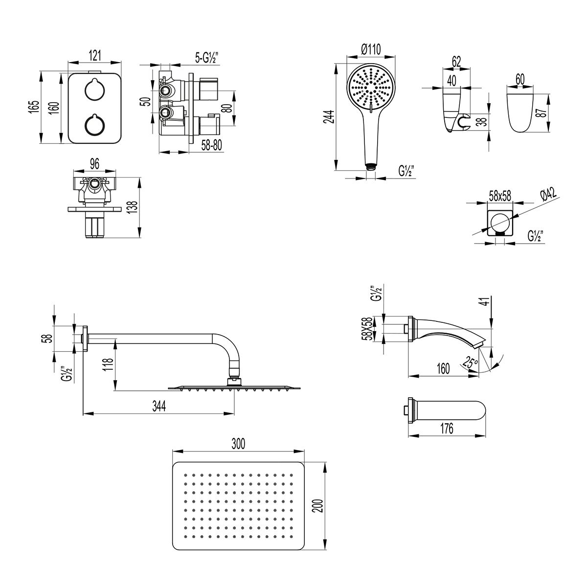 • Верхняя поворотная душевая лейка «Тропический дождь» 200х300 мм