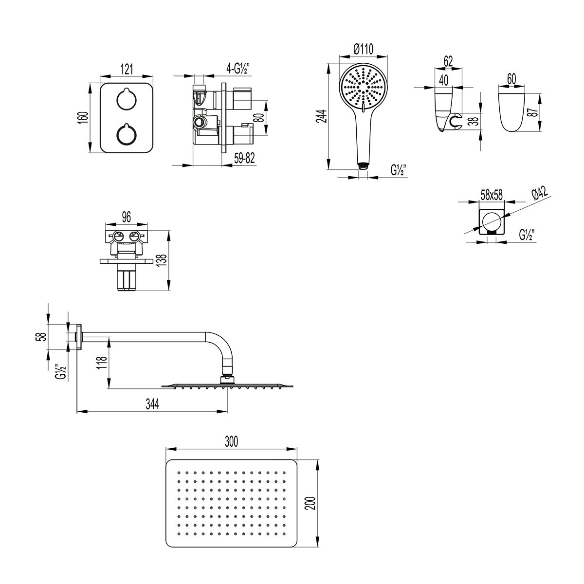• Верхняя поворотная душевая лейка «Тропический дождь» 200х300 мм