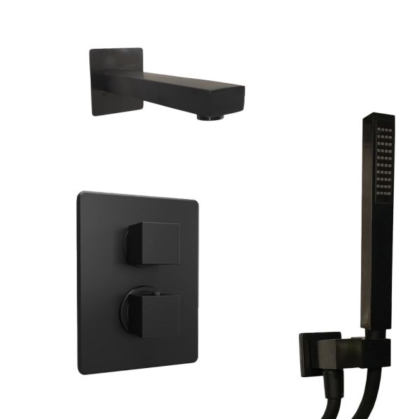 Душевой комплект Paini Grazia 21PZSET26911THBATH с термостатом чёрный матовый