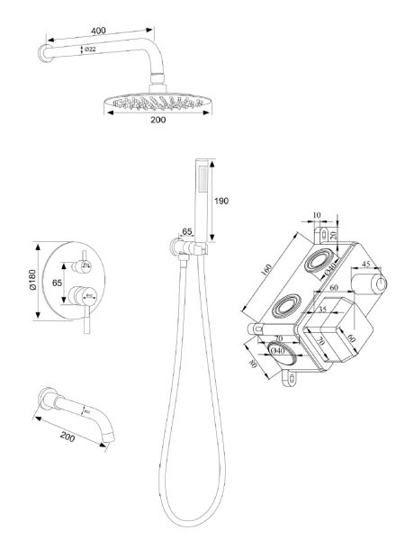 • Размер верхнего душа, см: