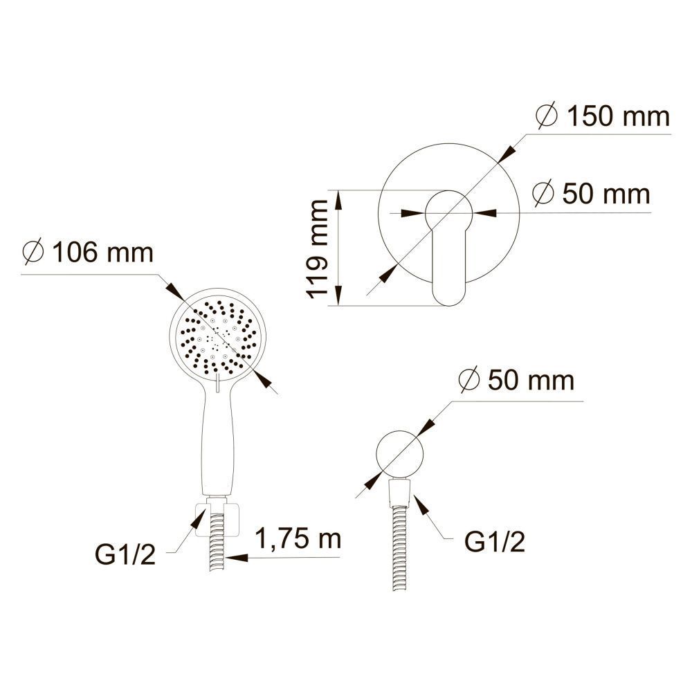 Размер ручного душа, см:14