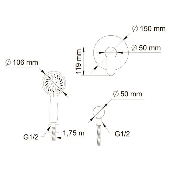 Swedbe Platta 5532 Душевой комплект с магнитным держателем и со встроенным смесителем.