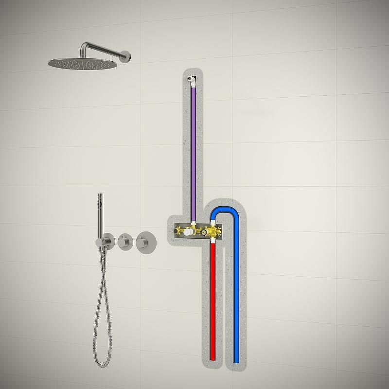 • Душевая система с термостатом, скрытого монтажа с круглой лейкой.