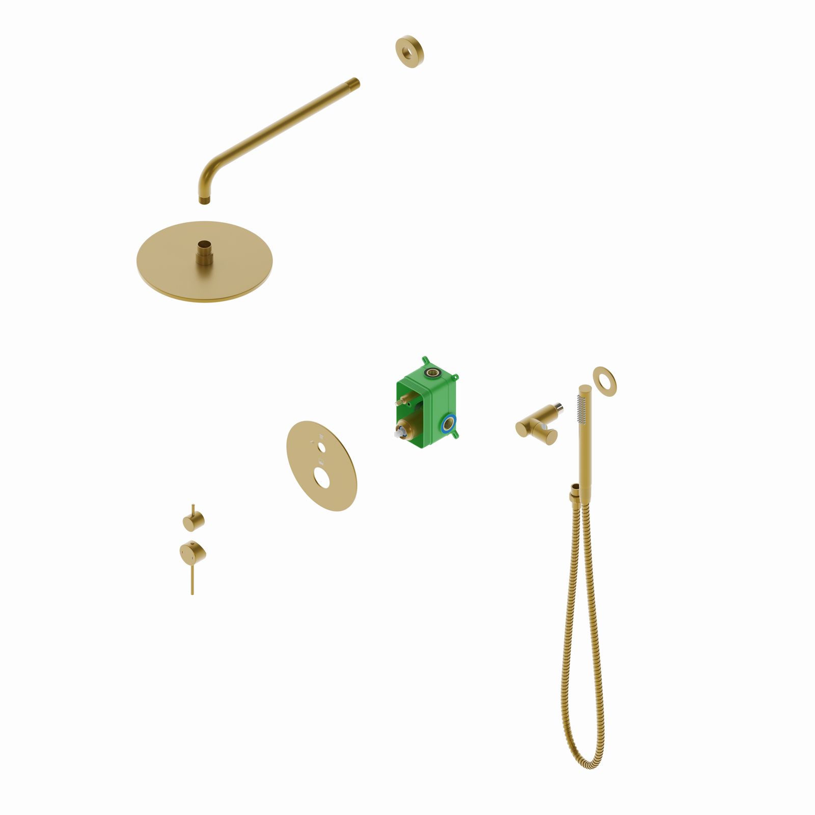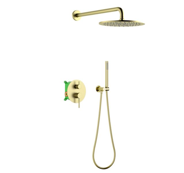 Цвет "матовое золото" никогда не выйдет из моды, во все времена драгоценный металл был признаком богатства.Встраиваемая душевая система Saona 2369, предназначена для монтажа в полой или твердой стене. Основные преимущества встроенной системы: коммуникации, крепления и механизмы спрятаны в стену и видны только декоративные элементы. Установить встроенную систему можно в любом месте. Использовать такой смеситель очень удобно, регулировка температуры и напора воды осуществляется одним рычагом. Регулируя напор воды в режиме "тропический душ", можно получить массажное воздействие различной интенсивности. Переключение режимов подачи воды (тропический душ, ручная лейка) осуществляется поворотом керамического дивертора. Сложностей монтажа не возникает при установке элементов душевой системы опытным сантехником.