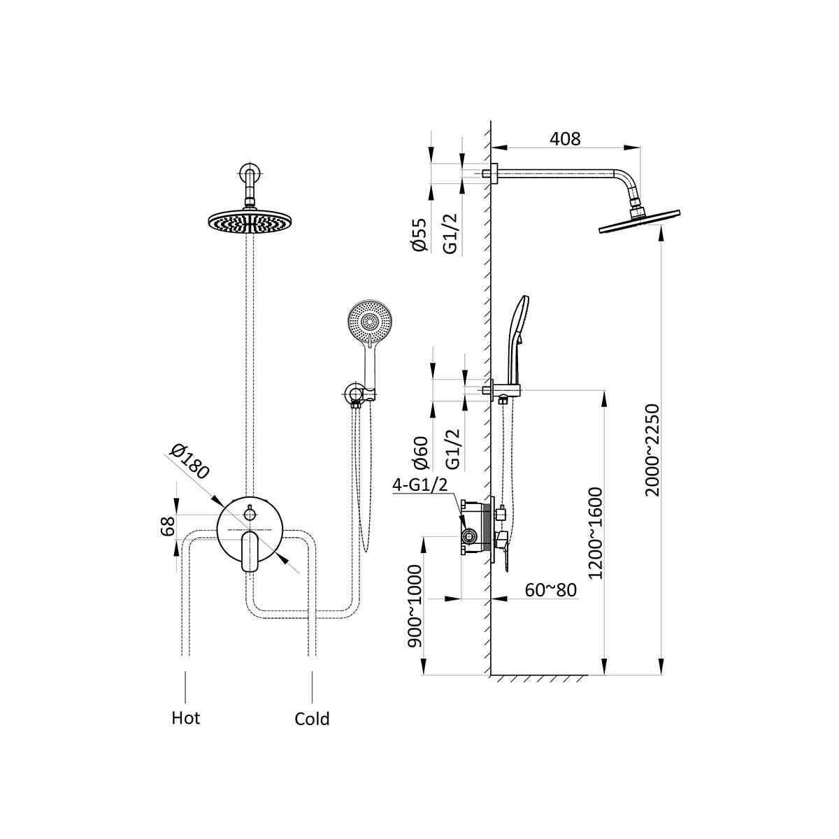 Верхний душ, ручной душ, смеситель со встраиваемой частью