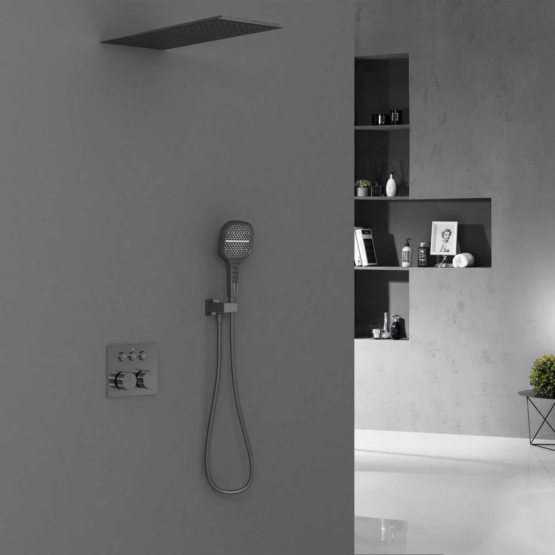 Душевая система Vincea VSFW-401TGM, термостатическая, с каскадным изливом, цвет вороненая сталь