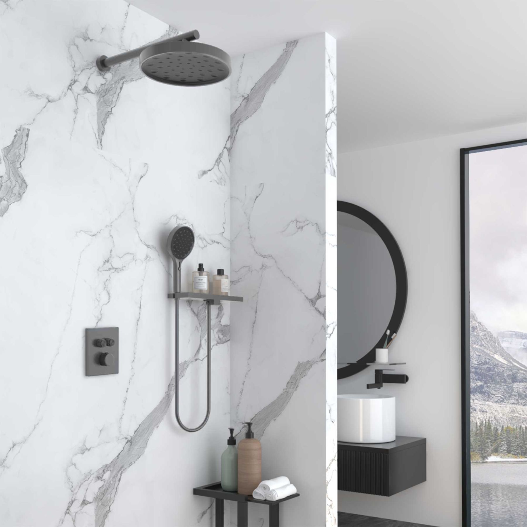 Душевой комплект Vincea Inspire VSFW-3I21MT2RGM встраиваемый, термостатический, двухрежимный, вороненая сталь