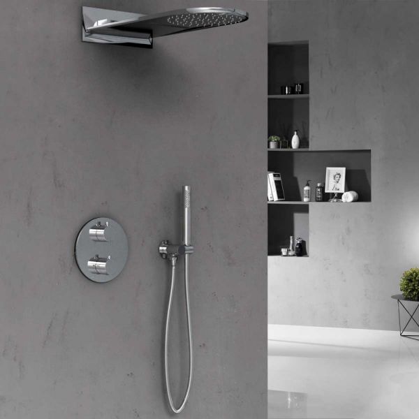 Состав комплекта: верхний душ, ручной душ, смеситель со встраиваемой частью