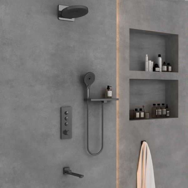 Душевой комплект Vincea VSFW-433TI1RGM встраиваемый, термостатический, трехрежимный, вороненая сталь