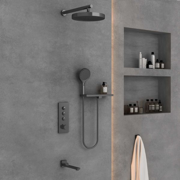 Душевой комплект Vincea VSFW-433TI2RGM встраиваемый, термостатический, трехрежимный, вороненая сталь