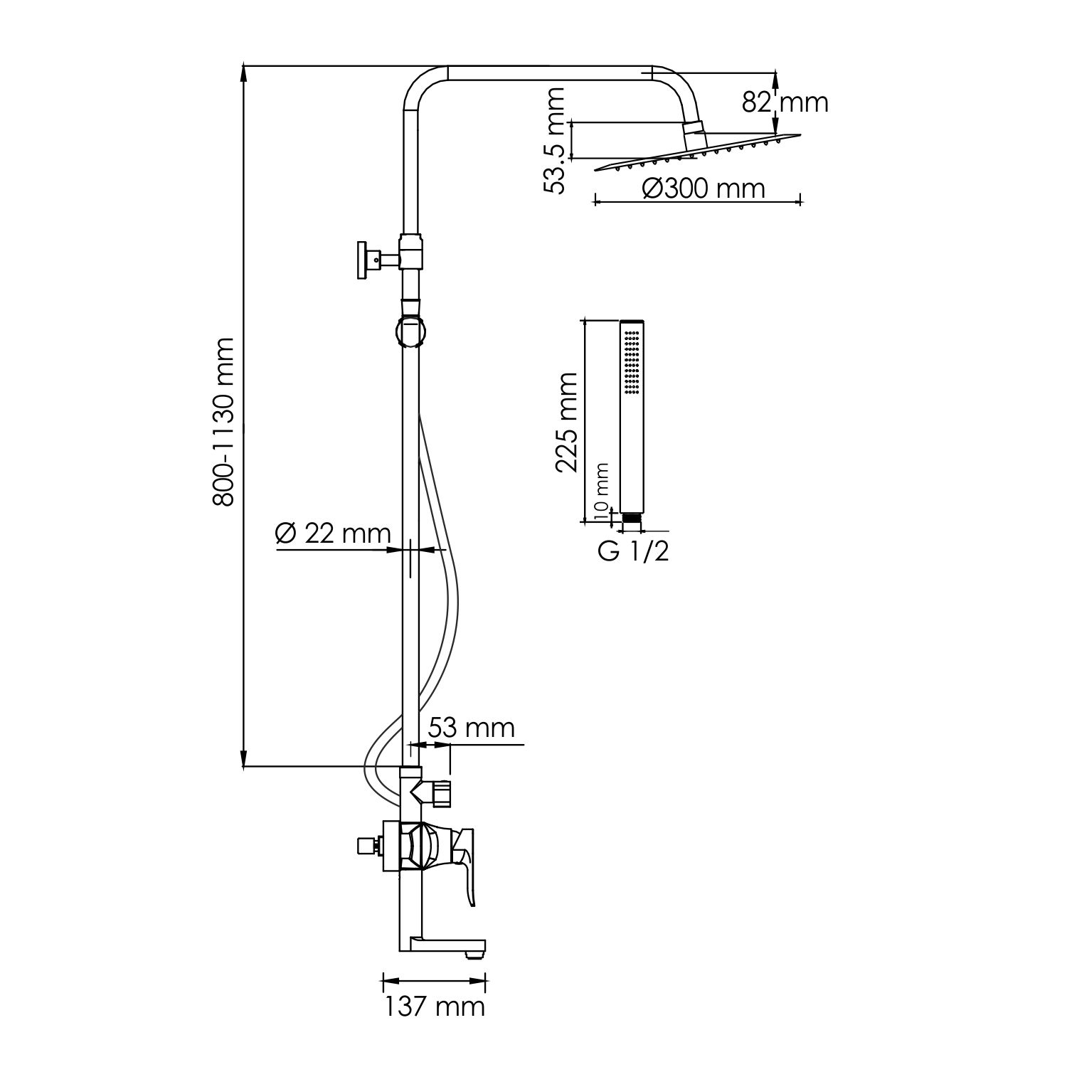 Стойка для душа, Ø 22 мм регулируемая по высоте