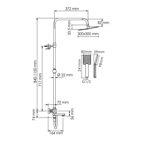 Стойка для душа, Ø 22 мм регулируемая по высоте