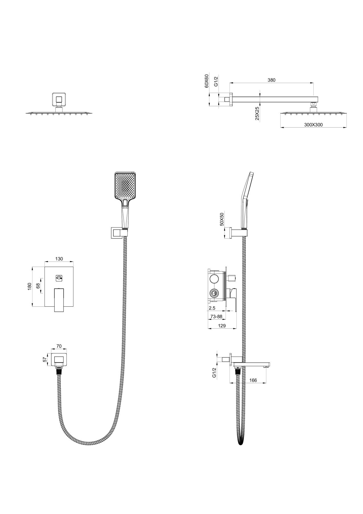 Душевая система встраиваемая WONZON & WOGHAND CUBE, Темный графит (WW-88939016-BGM)