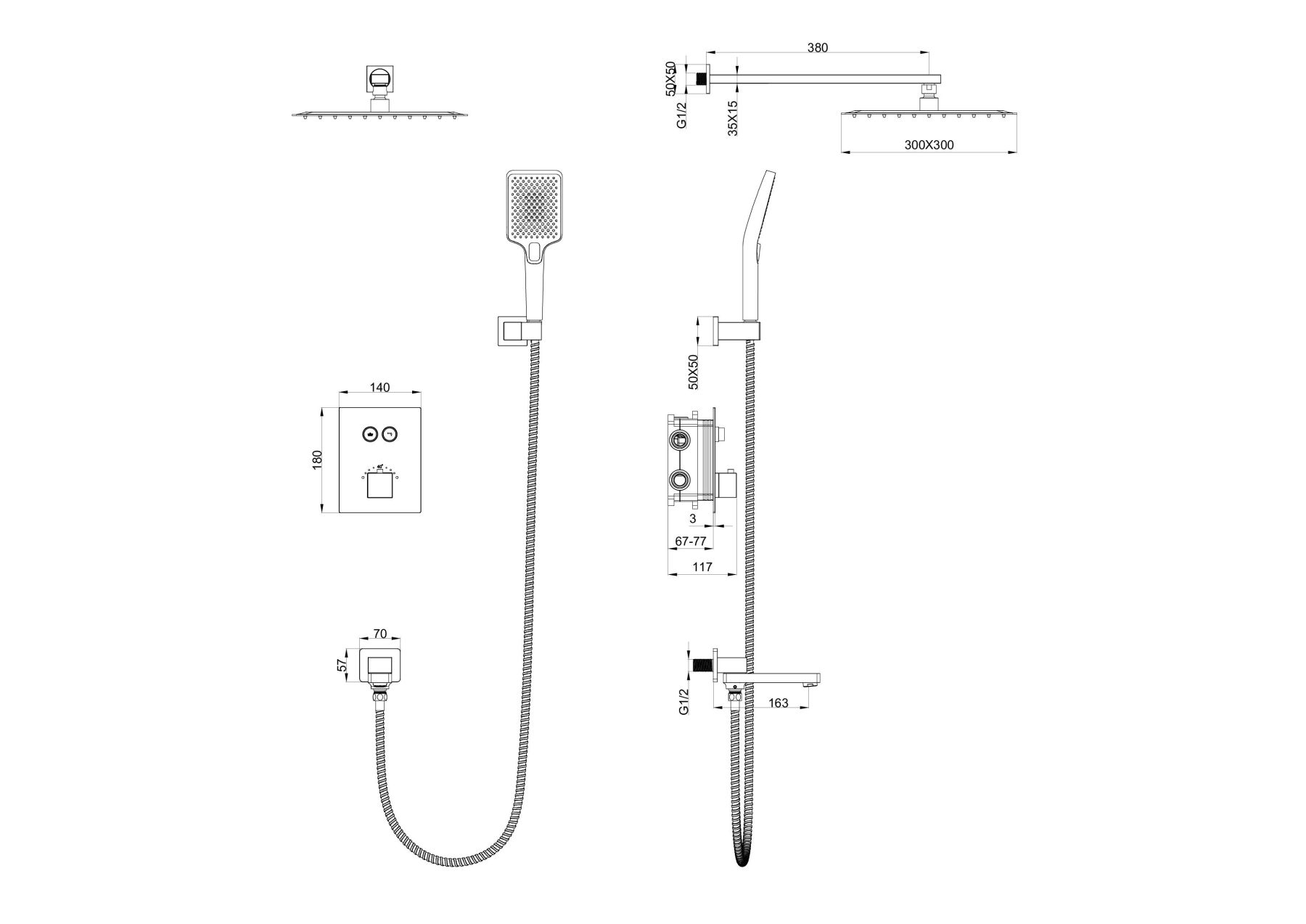 Душевая система с термостатом встраиваемая WONZON & WOGHAND, Черный матовый (WW-88929003-MB)