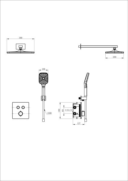 Душевой комплект Wonzon & Woghand WW-D2017-B-BG с термостатом брашированное золото