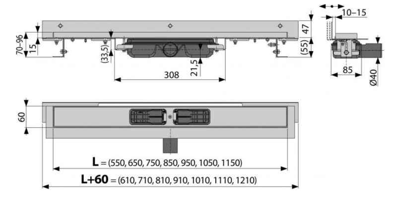 • Для водоотведения в душевых на уровне пола