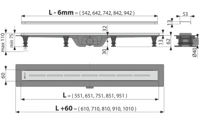 - Регулируемые монтажные ножки 0-35 мм, позволяют быстро и удобно установить желоб и выровнять его в горизонтальной плоскости