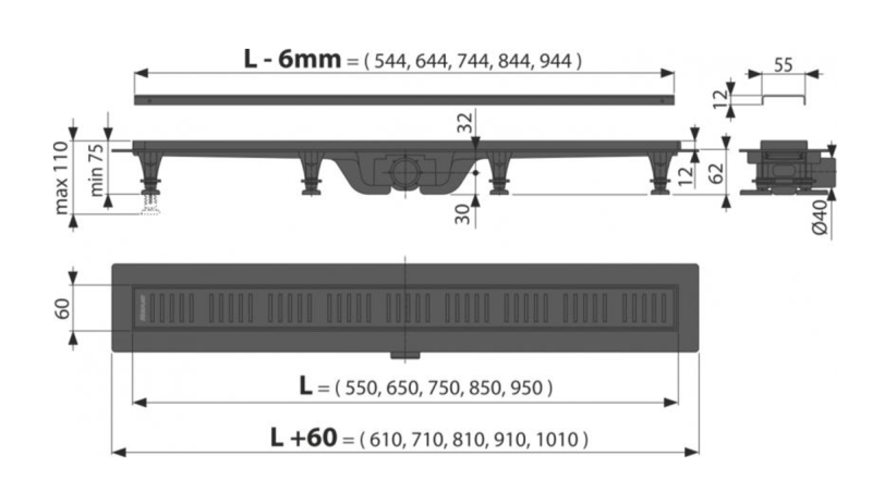• Диаметр сливной трубы 40 mm