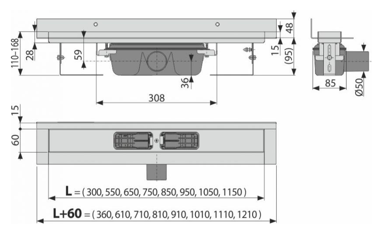 • Общая высота монтажа 110 – 168 мм
