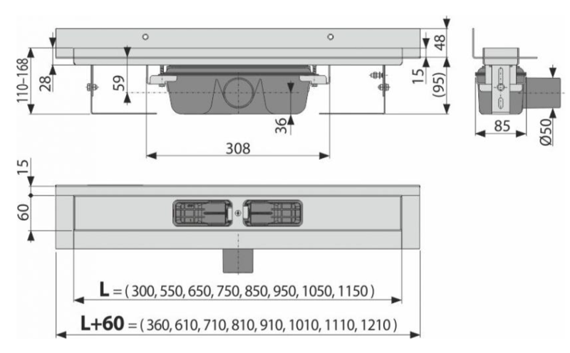 • Сифон прочно соединен с желобом и гарантирует 100% водонепроницаемость