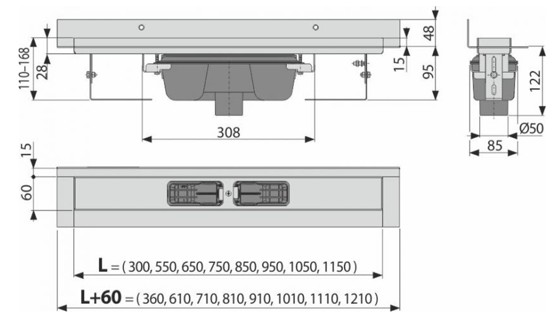 В комплекте поставки:Водоотводящий желоб с сифоном.