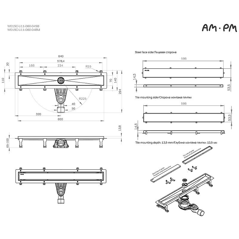 Душевой лоток AM.PM MasterFlow 60 W01SC-U11-060-04SB.Детально проработанная форма изделия, точные выверенные линии. Представляем инновационный лоток для душа Masterflow.Универсальная двухсторонняя решетка лотка может быть использована как самостоятельная декоративная вставка, либо как база для вклейки плитки.Лоток для душа имеет высокую пропускную способность 50 л/мин. Обладает комбинированным затвором: сухим магнитным и гидрозатвором. Проверенная технология гарантирует 100% защиту от проникновения запахов из канализации, высокую надежность и долговечность. Выдерживает даже самые большие механические нагрузки. Поворотный сифон на 360 градусов позволяет установить лоток наиболее удобным и комфортным образом.Продукт обладает низкой высотой монтажа и возможностью регулировки, что предполагает экономию бюджета при заливке пола. Нержавеющая сталь со специальным антикоррозийным защитным покрытием, нанесенная методом кислотной пассивации. Выход разработан на два диаметра: 40 и 50 мм, которые выбираются в процессе монтажа.Характеристики:Цвет решетки: хром матовый.