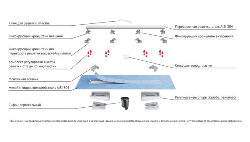 Душевой желоб Berges C1 Norma это современное функциональное решение для оборудования водоотвода во внутренних помещениях. Выполнен из высококачественной нержавеющей стали AISI 304, что обеспечивает жесткую фиксацию в основании пола и длительное использование.Изоляционная мембрана, интегрированная в стальной корпус, гарантирует непроницаемость и совместима со всеми изоляционными материалами.Усовершенствованная система настройки высоты изделия позволяет выполнить легкую регулировку под заданную толщину покрытия, с минимальной высотой монтажа (заливки) - 65мм. Поворотный сифон с гидрозатвором имеет высокую пропускную способность 48 л/мин и оригинальную самопромывную конструкцию.Съемная сетка для волос (грязеуловитель) предотвращает попадание мусора в сифон и позволяет легко проводить очистку желоба. Благодаря возможности переворота решетки и вклейки плитки, вы ощутите цельность пространства в вашей ванной комнате и душевой.