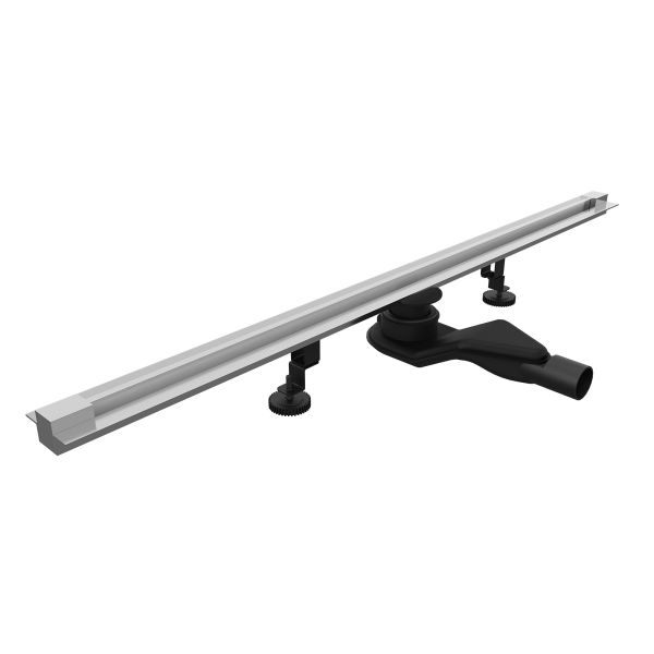Принимающей декоративный жёлоб маскирует сливное устройство, образует щель, куда сливается вся вода из душевого пространства. Для того чтобы вода эффективно отводилась в трап, на этапе монтажа необходимо обеспечить уклон облицовочной плитки в сторону принимающего жёлоба.Для доступа к технической части устройства с целью очистки необходимо извлечь среднюю часть жёлоба вместе с боковыми декоративными заглушками.Лоток выполнен из нержавеющей стали толщиной 2 мм, собирает стекающую воду и за счёт технического уклона отводит её в сетку-фильтр, которая задерживает волосы и мелкий мусор.Далее вода проходит в сифон с комбинированным затвором, Первая вода сталкивается с сухим затвором, который изготовлен из высокопрочного ABS-пластика. Затвор выполнен в виде крышки с силиконовой прокладкой, крышка открывается под давлением воды и плотно притягивается при отсутствии воды за счёт пружинного механизма, обеспечивая 100% защиту от проникновения неприятных запахов в ванную комнату из канализации.После вода проходит через сифон с гидрозатвором и сливается в канализацию.Сифон с гидрозатвором присоединяется к нижней части лотка трапа и имеет боковой отвод с поворотом на 360 градусов, что позволяет подключить канализационный сток с любой стороны.