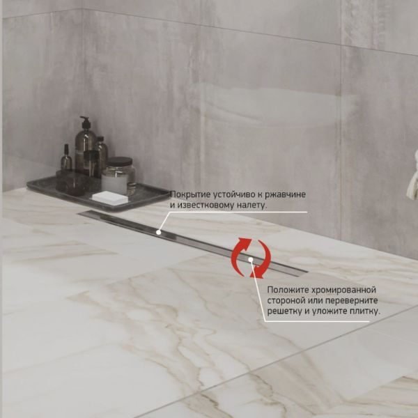 Щелевой (узкий) лотокЩелевой лоток для душа SLIM LINEширина решетки всего 35 мм.Скройте лоток из вида - покройте его плиткой в один уровень с полом.Два варианта цвета – классический хром и черный матовый.Европейское качествоГарантия производителя 25 лет. Срок службы не менее 30 лет.Несколько вариантов монтажаМожно установить как на регулируемые ножки, так и на подставку из полистирола (входит в комплект). Поворотный на 360 градусов сифон – удобно подключить к коммуникациям, даже если установка труб выполнена с небольшими ошибками. Заливка пола при установке – от 70 мм.Два дизайна в одном изделииЛоток PAINI можно положить ровной стороной, а можно перевернуть и уложить на него плитку. Так получится максимально замаскировать слив воды.Гидрозатвор – защита от неприятных запаховВодяная пробка не пропускает запахи при постоянной эксплуатации.Разнообразие размеровРазмерный ряд лотков: 500, 600, 700 и 800 мм. Для любых размеров помещения.Покрытие, устойчивое к повреждениямРжавчина и известковый налет не наносят ущерба и не задерживаются на двойном хромовом покрытии Cromo3.Корпус моделей в цвете черный (YO) защищен финишным цветным покрытием в технике порошковой окраски с использованием эпоксидных смол для большей устойчивости к повреждениям.Уход за лотками «ПАИНИ» предельно прост – достаточно протереть мыльной губкой или тряпочкой.Универсальное подключениеВыпуск D50 мм – подойдет на любую трубу.