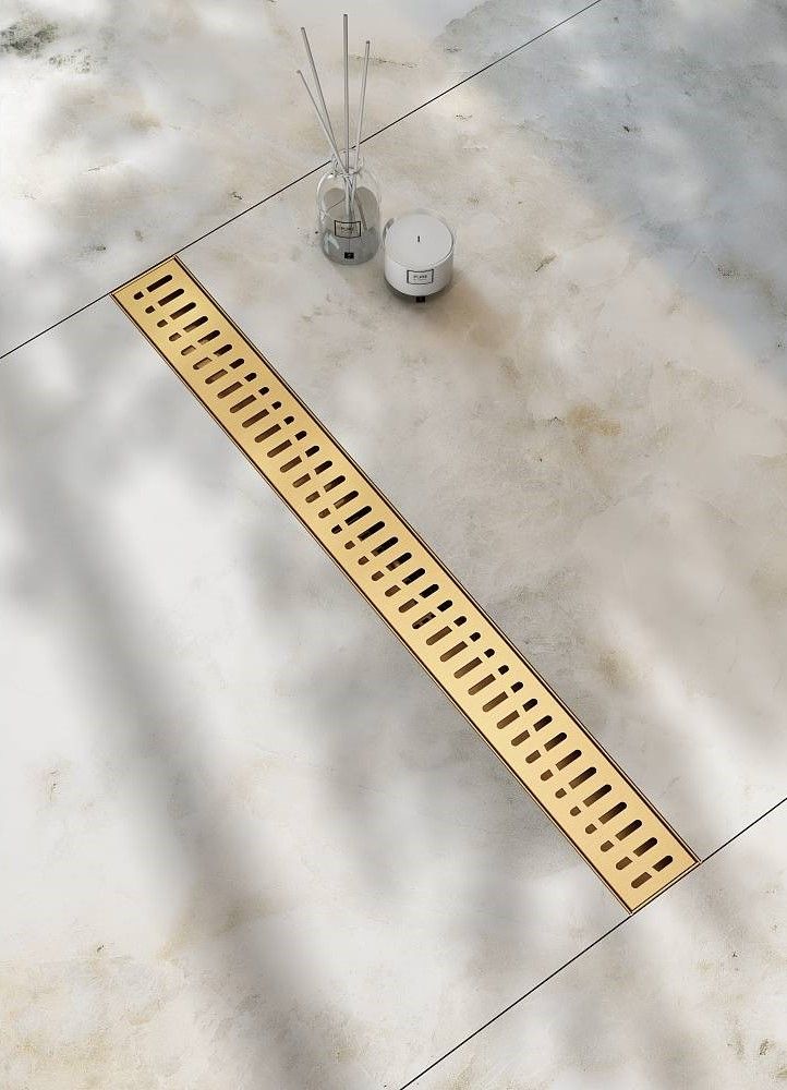 Трап изготовлен из высококачественной нержавеющей стали, в коллекции цвета трапа представлены в нескольких вариантах - черный матовый, сатиновый, золотой, графит. Линейный трап под кладку плитки для душа предназначен для отвода воды с пола или поддона под душем. Широкий диапазон регулировки по высоте позволяет устанавливать трап в новых ванных комнатах. Индивидуально регулируемые ножки обеспечивают беспроблемную установку, даже в тех случаях, когда Вы сталкиваетесь со значительными неровностями в различных частях монтажной поверхности. Трап обеспечивает свободный слив воды в канализационную систему, также собирая мусор, не давая ему засорять сливные каналы. Принцип работы сухого затвора: легкий поплавок диаметром больше сливного отверстия опускается и закрывает трубу в случае высыхания воды. В рабочем положении вода поднимает и удерживает поплавок на одном уровне и система работает, как один из вариантов гидрозатвора. Если трап не используется, то вода из затвора испаряется, а поплавок закрывает сливное отверстие. Выпуск: горизонтальный. Материал корпуса: нержавеющая сталь. Защита от запаха: сухой+гидрозатвор