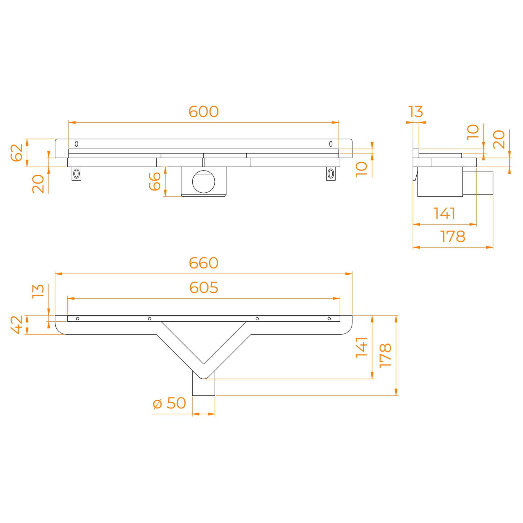 • Быстрый доступ к очистки трапа в отличии от других «скрытых» дренажных систем;