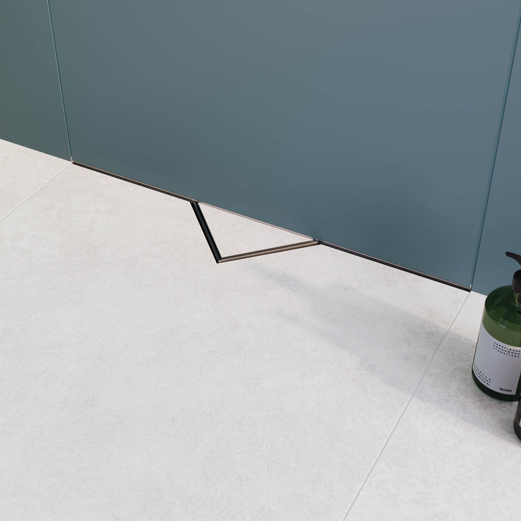 • Визуально скрытый дренаж с треугольной крышкой из нержавеющей стали, позволяющей вложить плитку и воплотить дизайн-концепцию в стиле "минимализм";