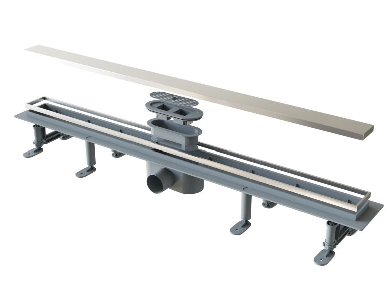 - Модель оснащена двухсторонней крышкой - решёткой из нержавеющей стали AIS 304, позволяющей вкладывать плитку для создания эффекта невидимости.